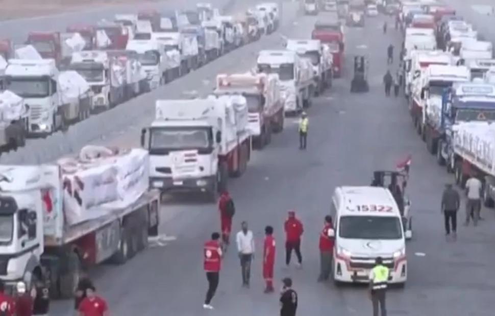 Το δίκτυο Al-Qahera News, που πρόσκειται στις αιγυπτιακές αρχές, μετέδωσε ότι «τα φορτηγά με ανθρωπιστική βοήθεια από την Αίγυπτο έφθασαν στο σημείο του περάσματος του Κερέμ Σαλόμ».
