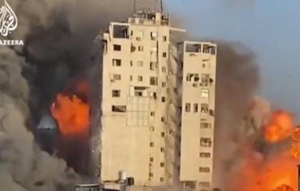 Βίντεο που δημοσίευσε ο λογαριασμός του Al Jazeera στο Twitter, δείχνει τη συγκλονιστική στιγμή που κτίριο 14 ορόφων στη Γάζα, το οποίο στέγαζε γραφεία μέσων ενημέρωσης, καταρρέει τη στιγμή που χτυπήθηκε από ισραηλινές βόμβες.