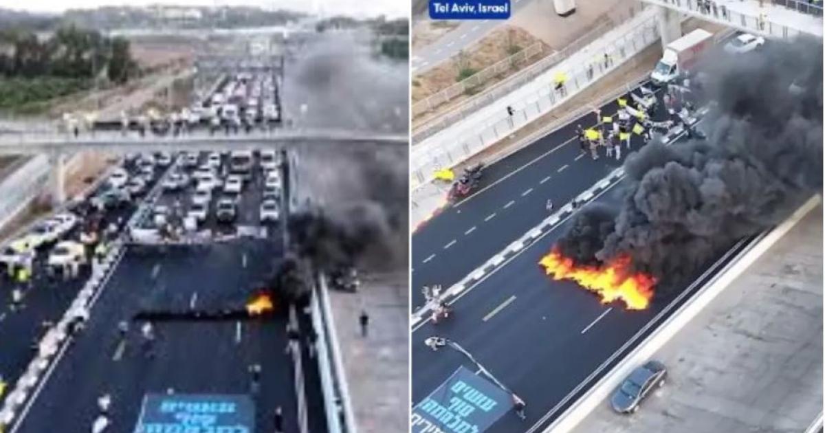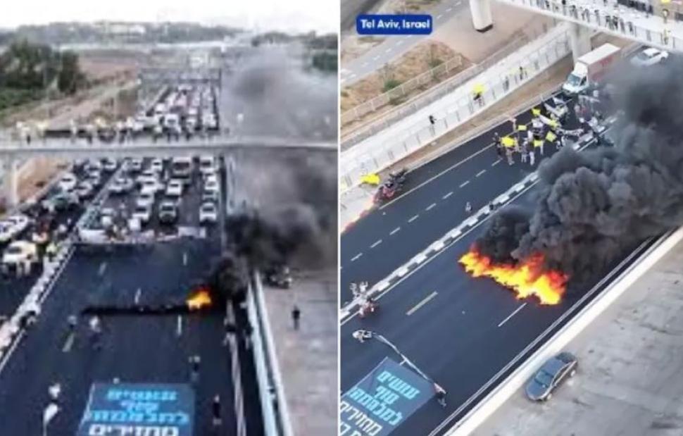Israelis staged a protest in Tel Aviv, blocking major roads to demand a ceasefire in Gaza and the release of Israeli hostages held in the blockaded enclave ⤵️ pic.twitter.com/j3Hdj4HJlG