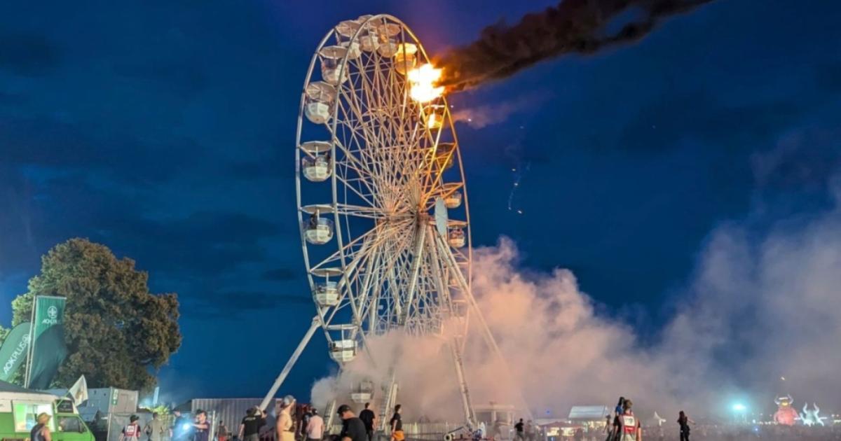 UPDATE: The fire is still burning on a ferris wheel at the Highfield Festival in Leipzig, Germany - which attracts 30,000 people every year. There were still passengers onboard the ferris wheel as it went up in flames.#BREAKING #Germany pic.twitter.com/gRmw2AzWEt