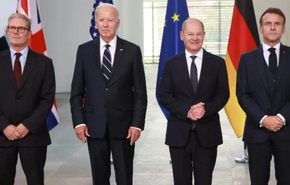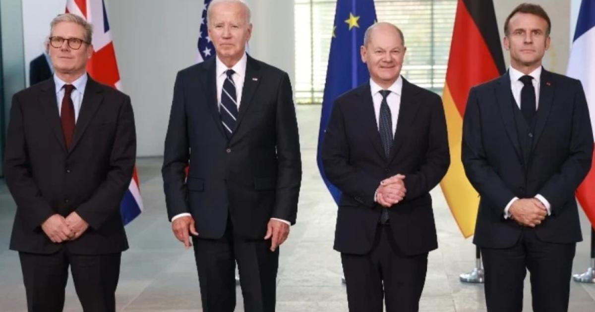 Σε κοινή δήλωση που δόθηκε στη δημοσιότητα μετά την τετραμερή συνάντηση στο Βερολίνο, ο Τζο Μπάιντεν, ο Εμανουέλ Μακρόν, ο Όλαφ Σολτς και ο Κιρ Στάρμερ δεσμεύονται να «συνεχίσουν να υποστηρίζουν την Ουκρανία στις προσπάθειές της να εξασφαλίσει μια δίκαιη και διαρκή ειρήνη, βασισμένη στο διεθνές δίκαιο, συμπεριλαμβανομένου του Χάρτη των Ηνωμένων Εθνών και στον σεβασμό της κυριαρχίας και της εδαφικής ακεραιότητας».