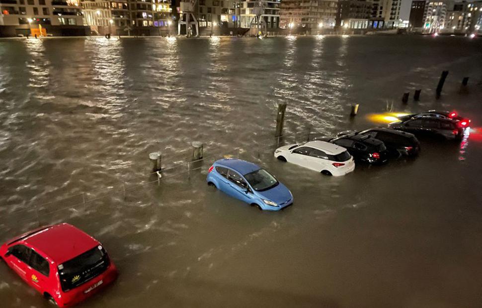 Η περίφημη ψαραγορά του Αμβούργου πλημμύρισε, καθώς η στάθμη του ποταμού Έλβα, που χύνεται στη Βόρεια Θάλασσα, ανέβηκε κατά 5,2 μέτρα πάνω από το φυσιολογικό επίπεδο.