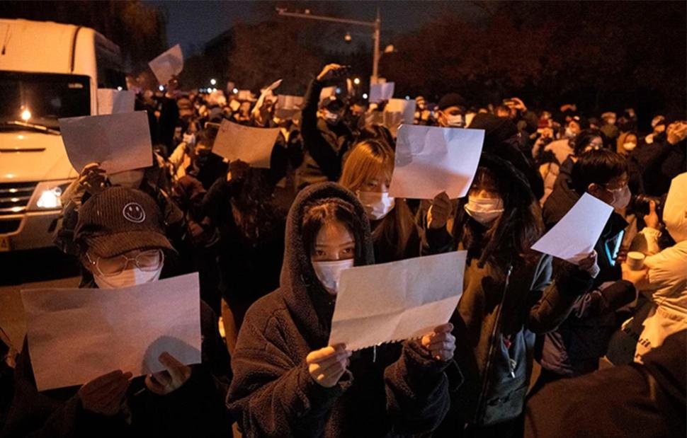 Η Κίνα ακολουθεί «πολιτική μηδενικής ανοχής» κατά του κορωνοϊού και εφαρμόζει σκληρά lockdown –όπως στη Σανγκάη– με κόσμο να πεθαίνει, επειδή απαγορεύεται να βγει από το σπίτι του και να πάει για ψώνια ή για φάρμακα. Έτσι, χιλιάδες Κινέζοι κατακλύζουν τους δρόμους για να διαμαρτυρηθούν, χωρίς να φωνάζουν συνθήματα ή να χρησιμοποιούν πλακάτ. Αντιθέτως, κρατούν στα χέρια τους ένα άδειο λευκό χαρτί Α4.
