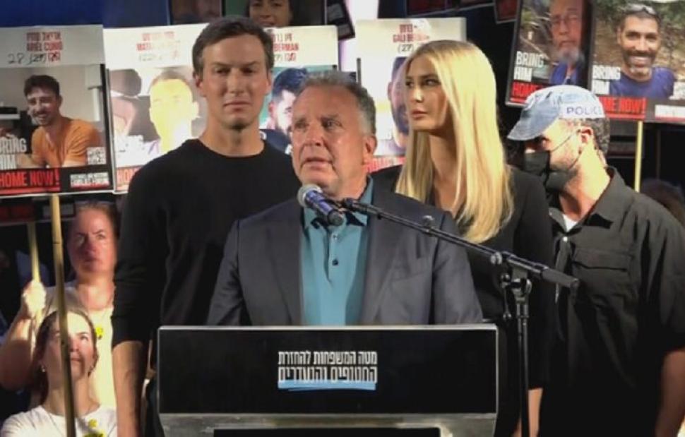 Ο έτερος αμερικανός απεσταλμένος Τζάρεντ Κούσνερ μίλησε εγκωμαστικά για τουςυς «εκπληκτικούς» στρατιώτες του Ισραήλ. Η σύζυγός του Ιβάνκα Τραμπ εξέφρασει δέος «από τη δύναμη των οικογενειών των ομήρων», τονίζοντας ότι ο πρόεδρος «είναι πάντα στο πλευρό τους».