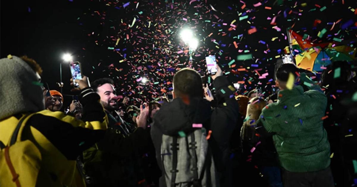 Τα μέλη της LGBTQ+ κοινότητας, πολλά από τα οποία δεν μπορούσαν να συγκρατήσουν τη συγκίνησή τους, παρακολουθούσαν από τις κερκίδες πάνω.