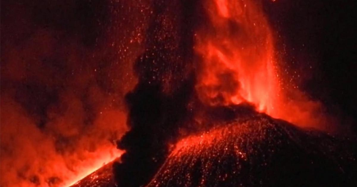 Νέα έκρηξη σημειώθηκε το βράδυ της Πέμπτης στην Αίτνα, που έβαψε με κόκκινο τον ουρανό.