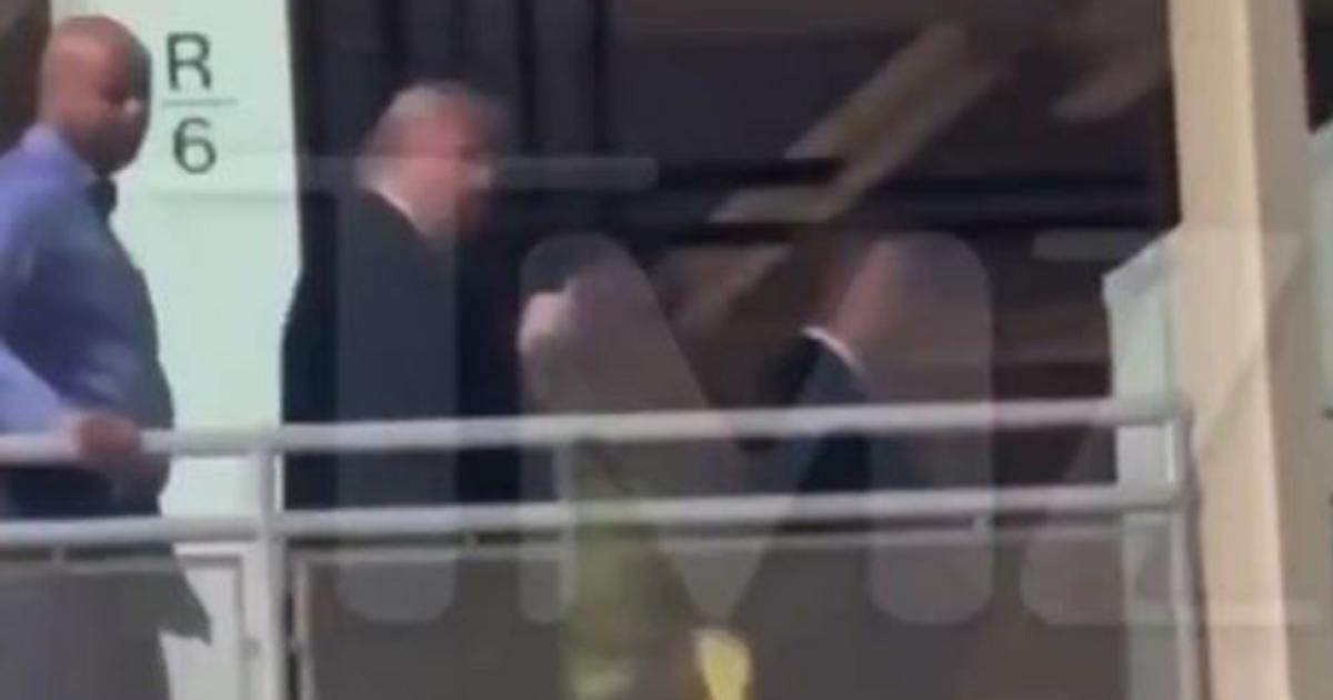 Ακούγεται κάποιος να φωνάζει διάφορα, ωστόσο δεν ακούγεται καθαρά· ο αμερικανός πρόεδρος, καθώς απομακρύνεται βαδίζοντας, κάνει την επίμαχη χειρονομία προς την κατεύθυνση αυτού που του απευθύνεται.