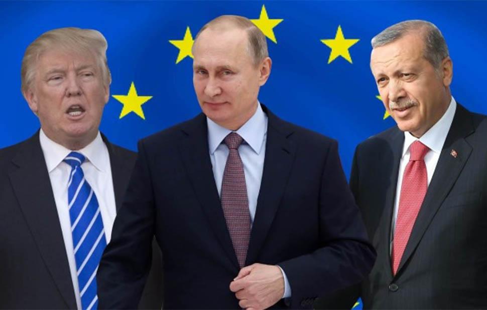 Η Ευρώπη είναι ο γεωγραφικός και οικονομικός χώρος που γίνεται "σάντουιτς" ανάμεσα σε ΗΠΑ και Ρωσία, όπου ζουν και βασιλεύουν δύο πολιτικές προσωπικότητες, οι οποίες απευθύνονται όχι σε λογικούς ανθρώπους, αλλά σε... παλαβούς. Ενίοτε, τη "νύφη" πληρώνουν και οι τρομοκρατημένοι πολίτες, οι οποίοι φοβούνται μήπως έχουν... κακή τύχη. Η συνύπαρξη Τραμπ-Πούτιν-Ερντογάν είχε λάβει χώρα και την περίοδο 2016-2020, αλλά τότε τα δεδομένα ήταν εντελώς διαφορετικά σε σχέση με την τρέχουσα συγκυρία.