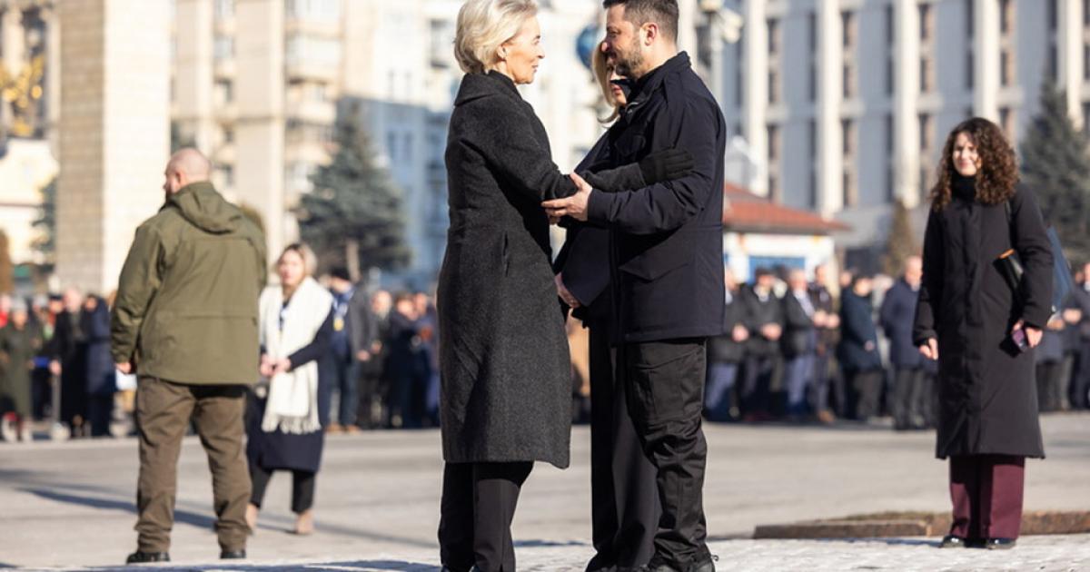 «Ο Πούτιν προσπαθεί περισσότερο από ποτέ να κερδίσει αυτόν τον πόλεμο επί του πεδίου. Στόχος του παραμένει η συνθηκολόγηση της Ουκρανίας. Και τότε ξέρουμε τι μπορεί να συμβεί μετά. Γιατί έχει ήδη ξαναγίνει. Δε διακυβεύεται μόνο η μοίρα της Ουκρανίας. Είναι και το πεπρωμένο της Ευρώπης» είπε η φον ντερ Λάιεν, μιλώντας στη σύνοδο κορυφής στο Κίεβο, με αφορμή την τρίτη επέτειο της ρωσικής εισβολής.