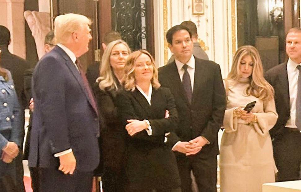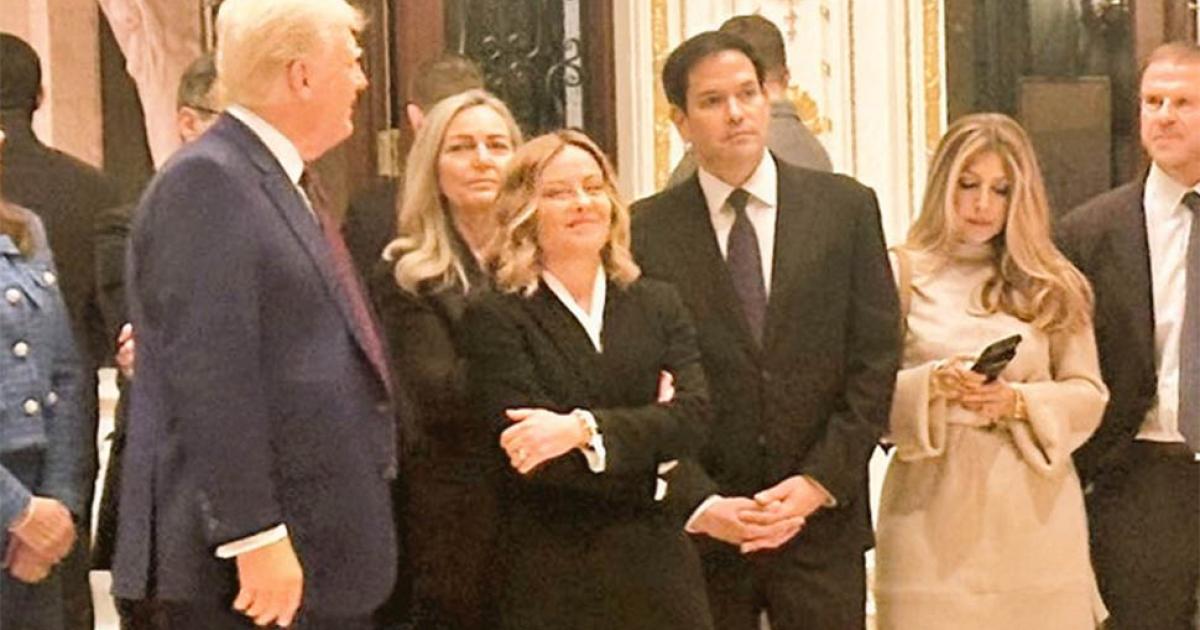 Μέλη του θερέτρου Μαρ-α-Λάγκο του Τραμπ υποδέχθηκαν τη Μελόνι με χειροκροτήματα, σύμφωνα με βίντεο που αναρτήθηκαν στα μέσα κοινωνικής δικτύωσης, μεταξύ άλλων και από δημοσιογράφους.