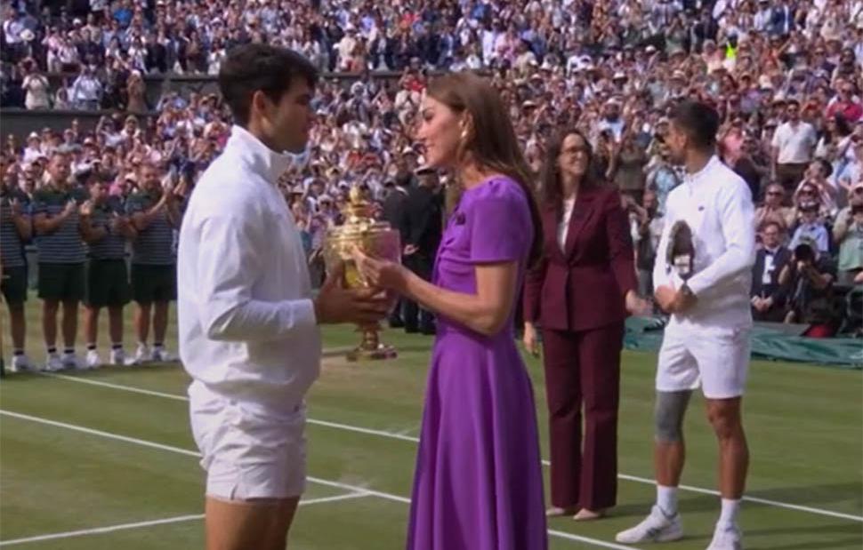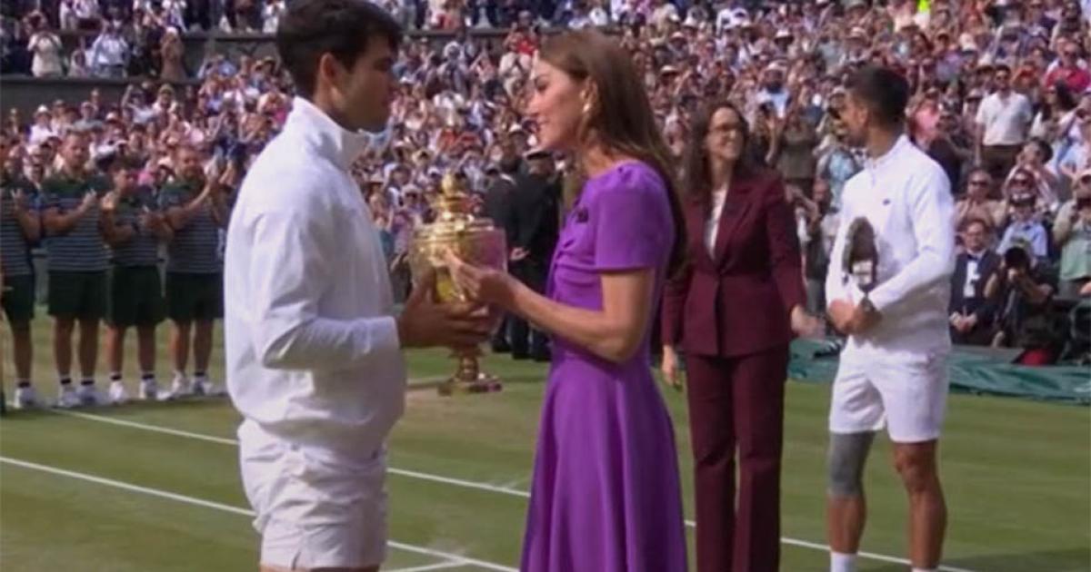 Το παρών στον τελικό ανδρών τένις στο Wimbledon έδωσε η πριγκίπισσα της Ουαλίας Κέιτ Μίντλετον, όπου μάλιστα έκανε και την απονομή του τροπαίου στον νικητή Κάρλος Αλκαράθ.