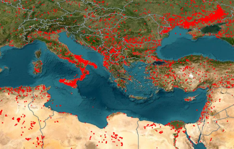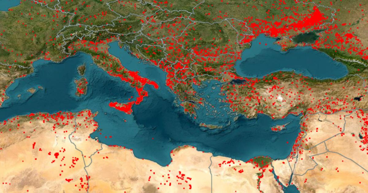 Από την Ελλάδα στην Ισπανία και από τη νότια Γαλλία στην Κύπρο το δορυφορικό σύστημα της NASA καταγράφει τις εστίες των πυρκαγιών σε όλη τη Μεσόγειο.