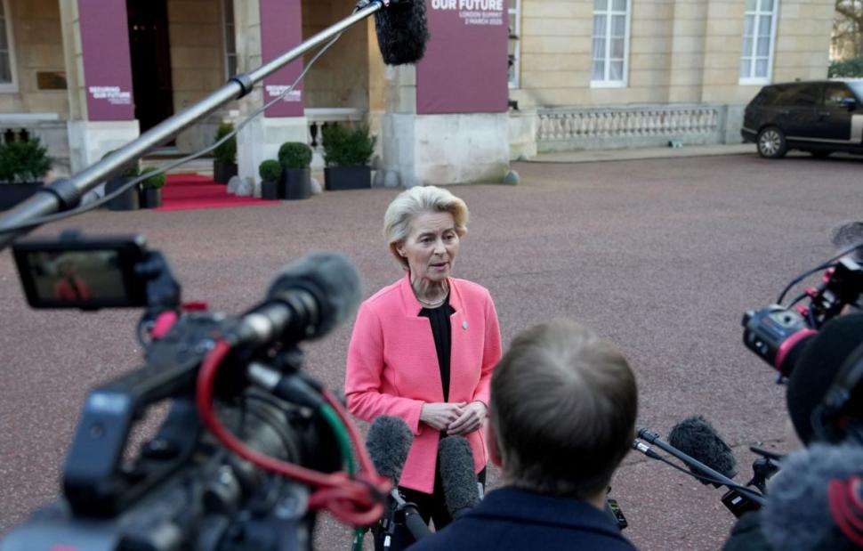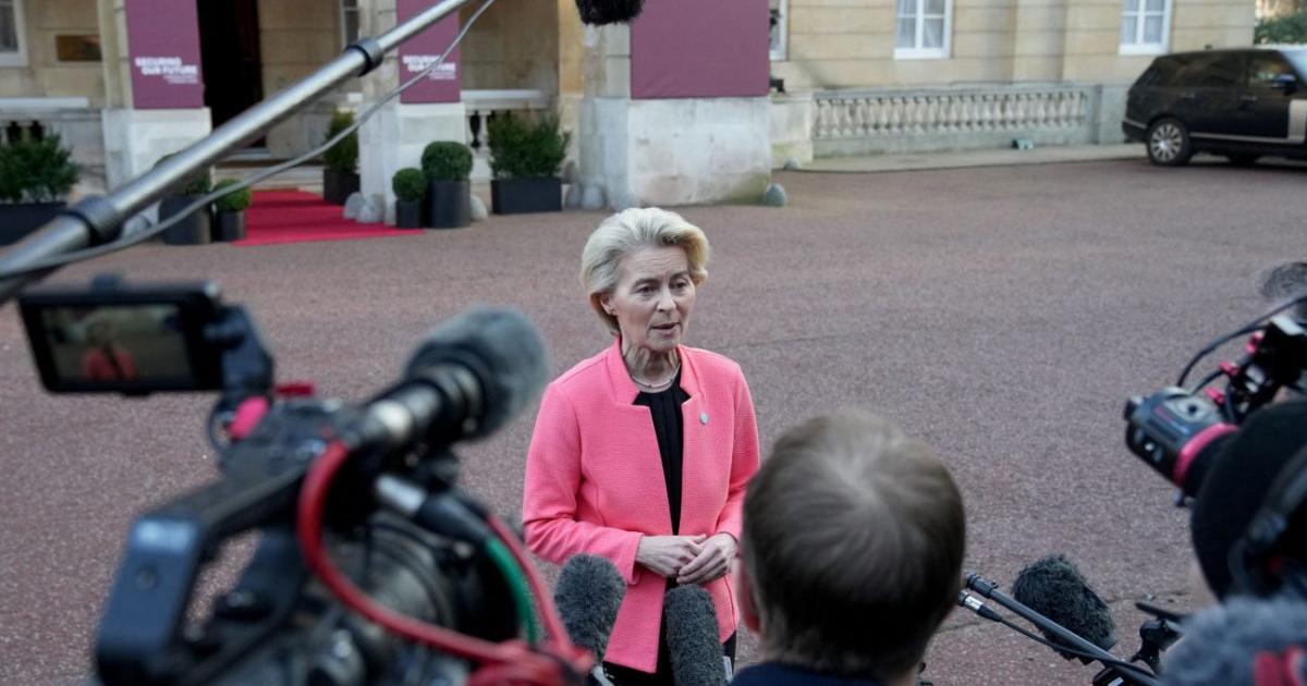 Η πρώτη που τοποθετήθηκε μετά τη λήξη της Συνόδου του Λονδίνου ήταν η πρόεδρος της Κομισιόν, Ούρσουλα φον ντερ Λάιεν, η οποία έκανε λόγο για μια «καλή και ειλικρινή συνάντηση τονίζοντας ότι η Ουκρανία χρειάζεται εγγυήσεις ασφαλείας και η Ευρώπη πρέπει να επανεξοπλιστεί.