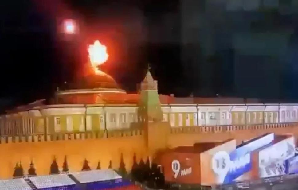 Η Μόσχα έδωσε στη δημοσιότητα ένα βίντεο που κυκλοφορεί στα μέσα κοινωνικής δικτύωσης στην Ρωσία, και δείχνει στήλη καπνού επάνω από το Κρεμλίνο, υποστηρίζοντας ότι είναι από την κατάρριψη των δύο drone, με τα οποία επιχειρήθηκε η δολοφονία του Ρώσου προέδρου.