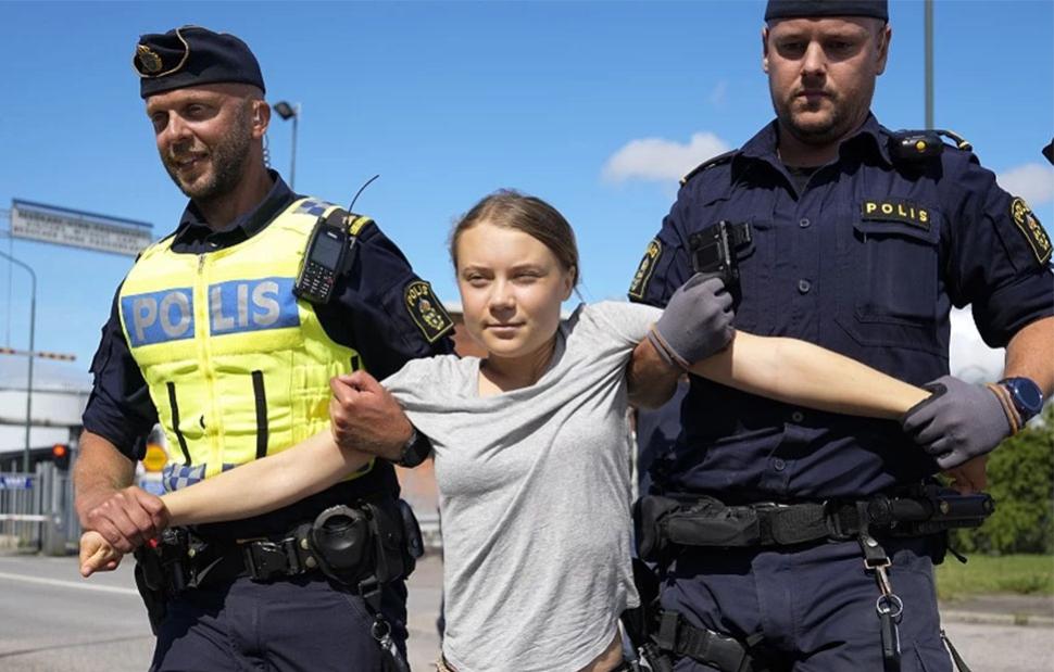 Η νεαρή ακτιβίστρια συμμετείχε σε κινητοποίηση αποκλεισμού του λιμανιού του Μάλμε. Έτσι, συνολικά έξι ακτιβιστές, μεταξύ των οποίων και η 20χρονη Τούνμπεργκ, απομακρύνθηκαν από την αστυνομία επειδή «αρνήθηκαν να συμμορφωθούν» με τις εντολές των αστυνομικών.