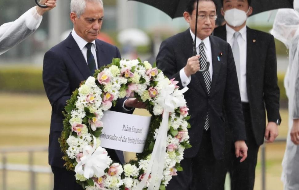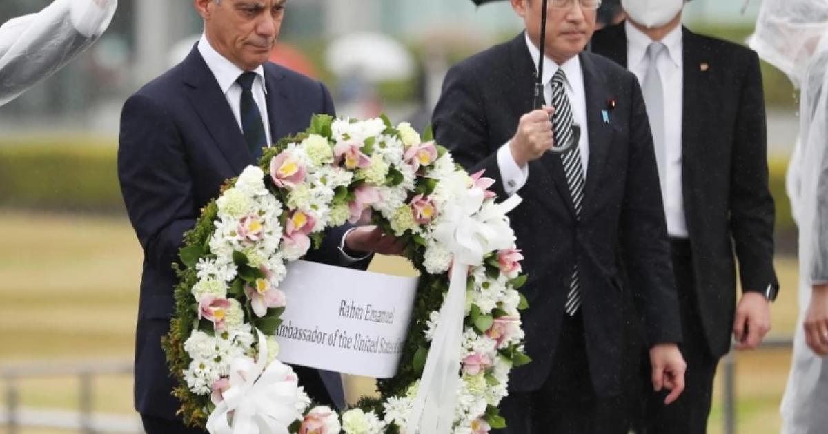 My first time in Hiroshima today, to follow Japanese Prime Minister Fumio Kishida & US Ambassador to Japan Rahm Emanuel pay tribute to victims of the Hiroshima bombings amid Russia’s nuclear saber rattling. They laid wreaths at the victims memorial: pic.twitter.com/vwmcr6YhZy