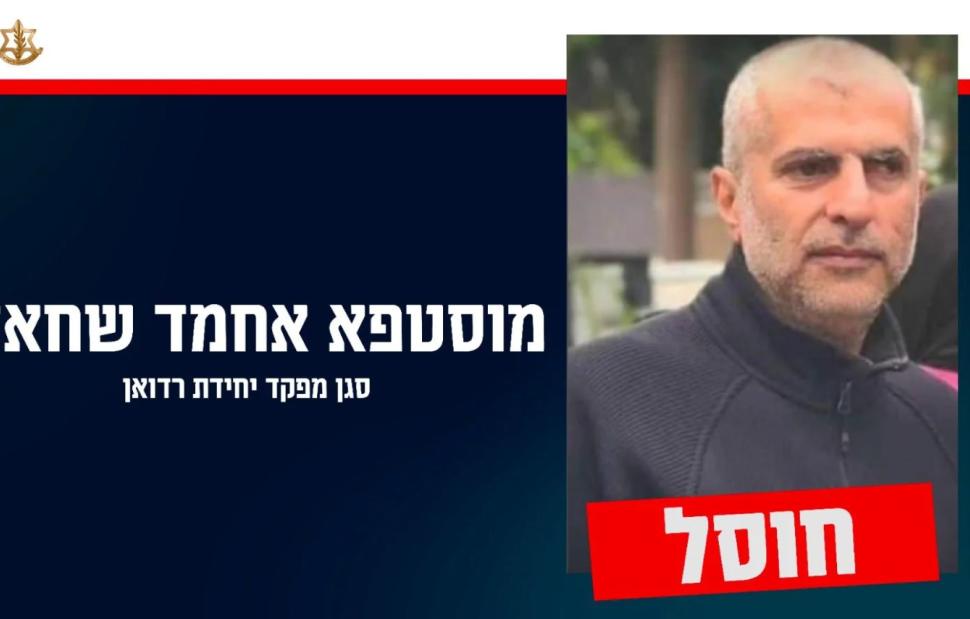 מצורפת תמונה של מוסטפא אחמד שחאדי, סגן מפקד כוח רדואן של ארגון הטרור חיזבאללה שחוסל על ידי צה"ל pic.twitter.com/DKhVW7X423