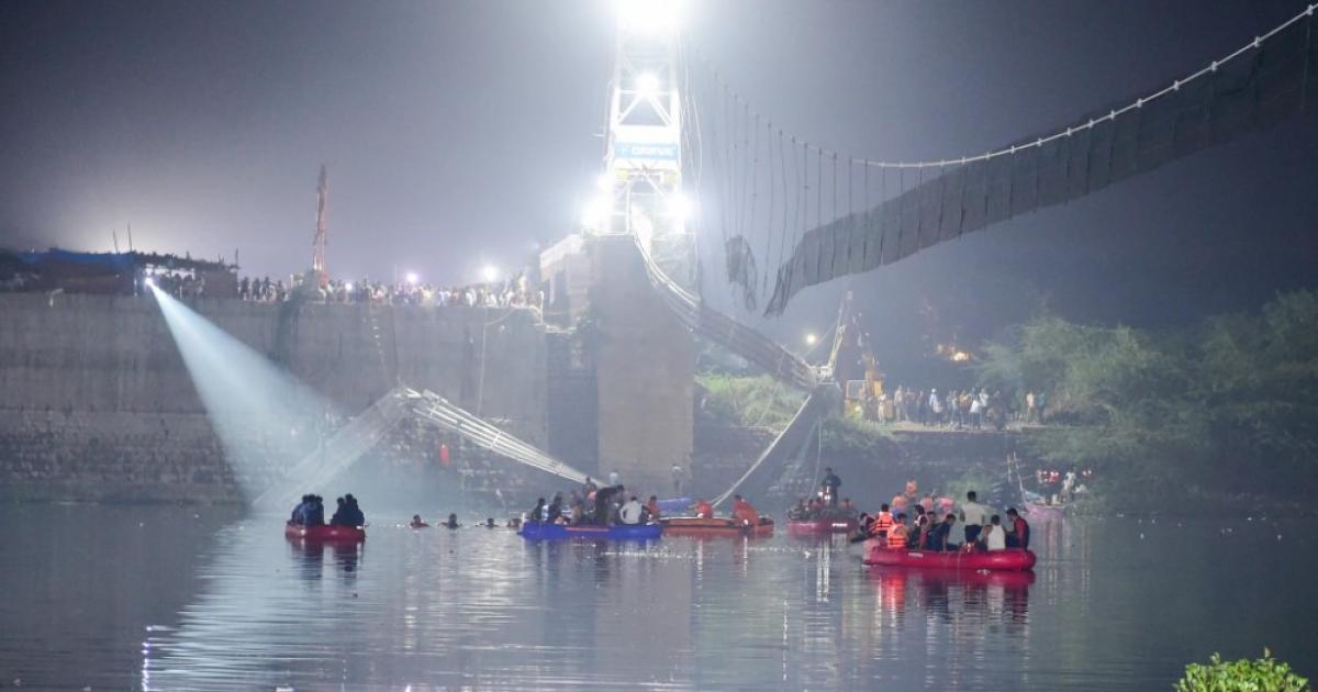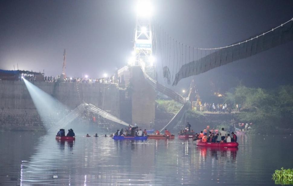 Η γέφυρα στον ποταμό Ματσού, που διαπερνά τη Μόρμπι, περίπου 200 χιλιόμετρα δυτικά από την Αχμενταμπάντ, τη μεγαλύτερη πόλη της πολιτείας Γκουτζαράτ, κατασκευάστηκε την περίοδο της βρετανικής αποικιοκρατικής κυριαρχίας. Μόλις είχε ανοίξει ξανά για το κοινό έπειτα από πολύμηνες εργασίες συντήρησης.