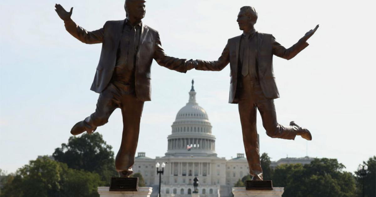 Ένα νέο άγαλμα θα μπορούν να απολαμβάνουν οι τουρίστες και οι κάτοικοι της Ουάσινγκτον έξω από το Καπιτώλιο των ΗΠΑ, με το γλυπτό να απεικονίζει δύο άνδρες που παίζουν, χαμογελούν και κρατιούνται από το χέρι, αλλά ο Αμερικανός πρόεδρος δεν προβλέπεται να αξιολογήσει θετικά αυτή την εικαστική παρέμβαση.