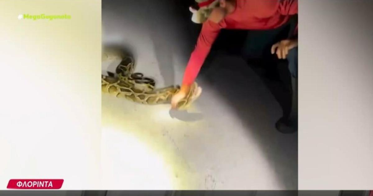 Η βοηθός του σφραγίζει το στόμα του φιδιού με κολλητική ταινία και στη συνέχεια παραδίδουν το ερπετό στην ειδική υπηρεσία άγριας ζωής για θανάτωση.