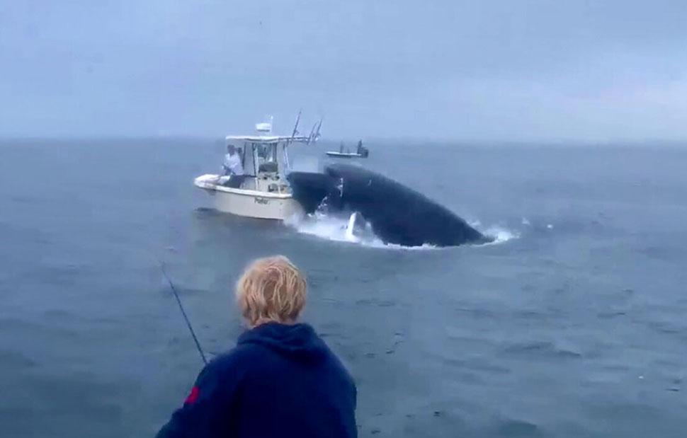 Στιγμές τρόμου έζησαν δύο ψαράδες στο Νιού Χάμσαϊρ των ΗΠΑ όταν είδαν στη βάρκα στην οποία ήταν μέσα να πέφτει με δύναμη μια φάλαινα.