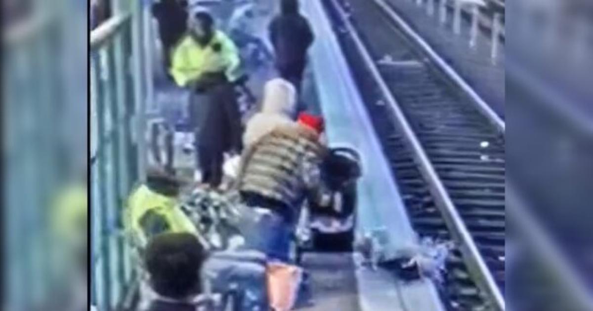 Συγκλονιστικά πλάνα δείχνουν τη γυναίκα να κάθεται πίσω από το παιδί πριν ξαφνικά το σπρώξει στις ράγες.
