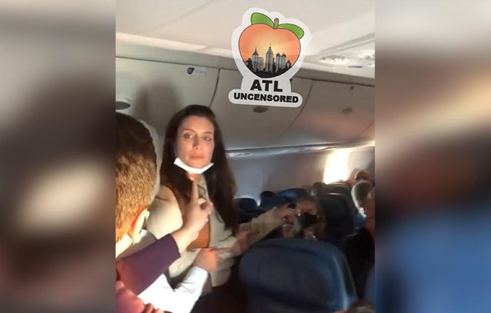 Σε βίντεο που ανήρτησε ο λογαριασμός ATL Uncensored στο twitter καταγράφεται η γυναίκα να στέκεται στον διάδρομο του αεροσκάφους και να υβρίζει έναν άνδρα που κάθεται στη θέση του. «Βάλε τη γ@@@@ένη μάσκα σου!» του φωνάζει αν και η ίδια έχει κατεβάσει τη μάσκα στο πηγούνι της.