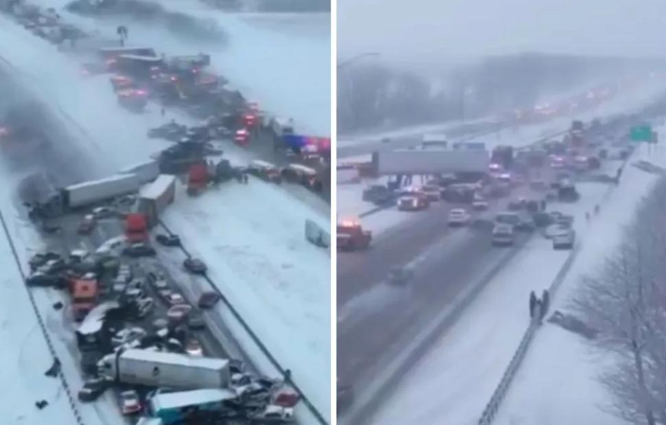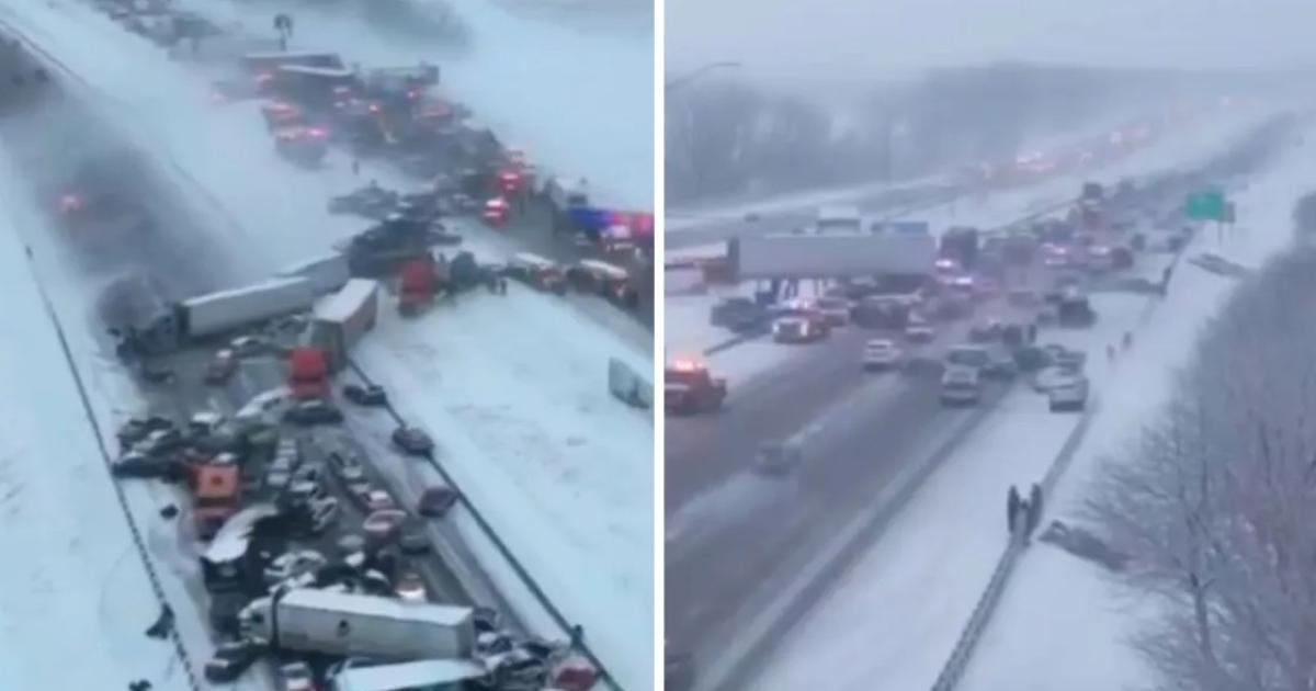A major pileup occurred on a highway in Indiana after heavy snowfall. Visibility dropped almost instantly, causing vehicles to slam into one another.