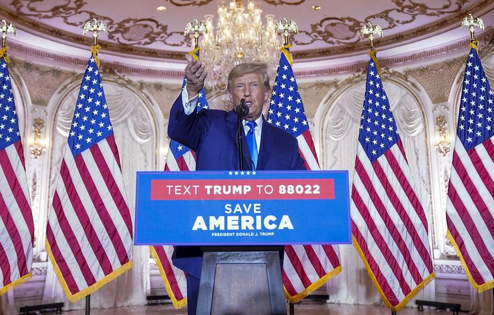 Ο Ρεπουμπλικάνος πρώην πρόεδρος επισημοποίησε την υποψηφιότητά του, την τρίτη κατά σειρά, με έγγραφο που επιδόθηκε στην ομοσπονδιακή εκλογική επιτροπή (Federal Election Commission, FEC), μερικά λεπτά προτού κάνει τη «μεγάλη ανακοίνωση» που είχε προαναγγείλει μπροστά στους συγκεντρωμένους οπαδούς του που ανυπομονούσαν στην πολυτελή κατοικία του στο Μαρ-α-Λάγκο, στη Φλόριντα.