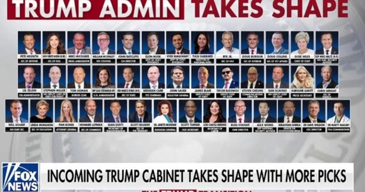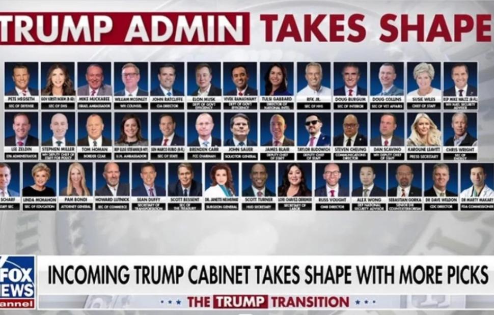 «Κλειδώνουν» σταδιακά τα ονόματα στο επιτελείο του νεοεκλεχθέντα προέδρου των ΗΠΑ, Ντόναλντ Τραμπ, ο οποίος μέχρι σήμερα, Κυριακή 1 Δεκεμβρίου έχει ανακοινώσει ορισμένους βασικούς υποψηφίους, οι οποίοι θα αναλάβουν θέσεις στην κυβέρνηση που θα σχηματίσει ή στις υπηρεσίες του στον Λευκό Οίκο.