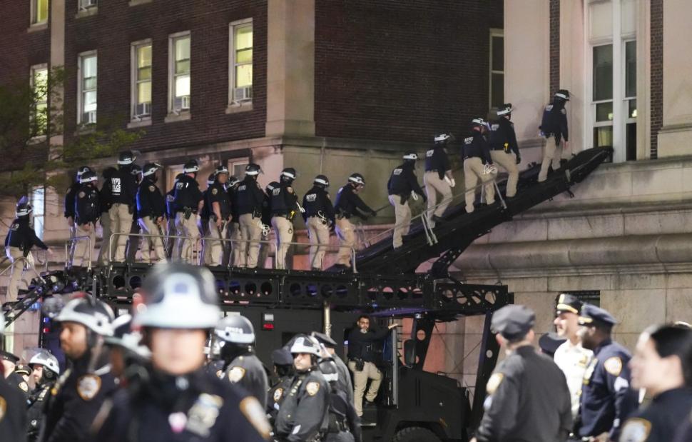 Η αστυνομία της Νέας Υόρκης επενέβη το βράδυ της Τρίτης (τα ξημερώματα ώρα Ελλάδας) στην πανεπιστημιούπολη του Κολούμπια, όπου διαδηλωτές είχαν κλειστεί στο κτίριο. Όχημα της αστυνομίας εφοδιασμένο με σκάλα πλησίασε το κατειλημμένο κτίριο.
