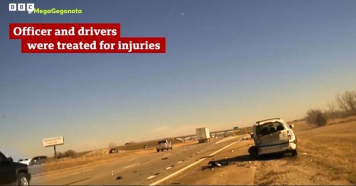 Το βίντεο-ντοκουμέντο δείχνει έναν αστυνομικό να παρασύρεται από ένα όχημα που έρχεται με ιλιγγιώδη ταχύτητα σε αυτοκινητόδρομο της Οκλαχόμα.
