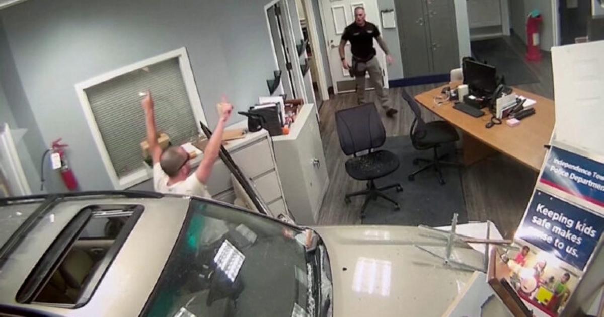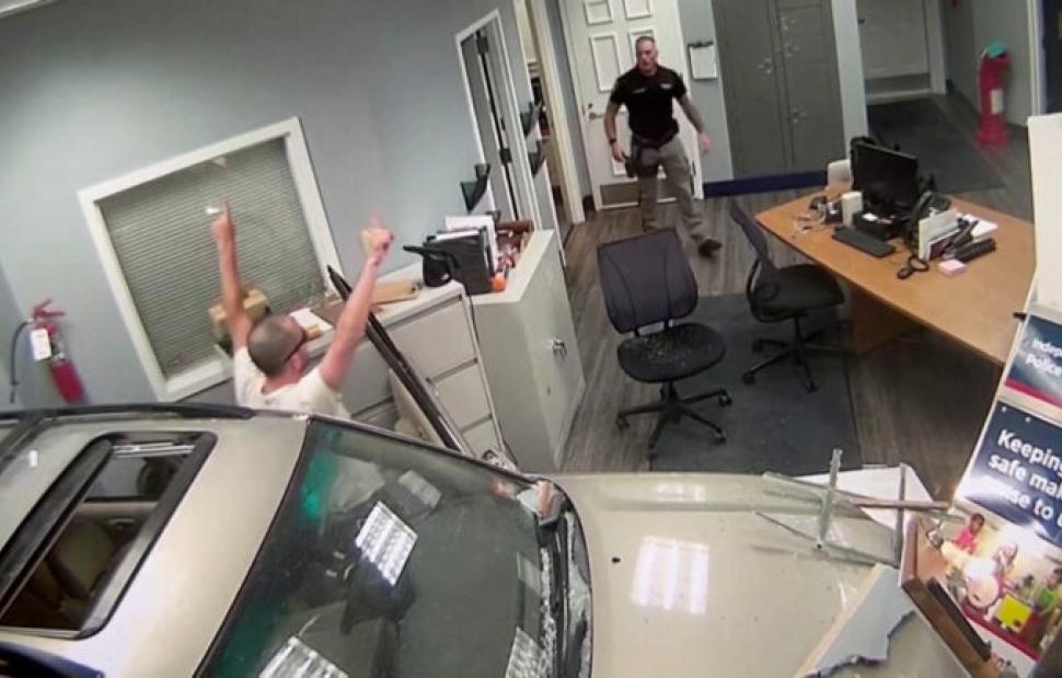 Η αστυνομία του Νιου Τζέρσεϊ έδωσε την Παρασκευή (29 Σεπτεμβρίου) στη δημοσιότητα βίντεο που δείχνει αυτοκίνητο τύπου SUV να «μπουκάρει» μέσα στο τμήμα και τον οδηγό να βγαίνει από αυτό με τα χέρια ψηλά. Από καθαρή τύχη γλίτωσε ένας αστυνομικός, ενώ προκλήθηκαν εκτεταμένες ζημιές.