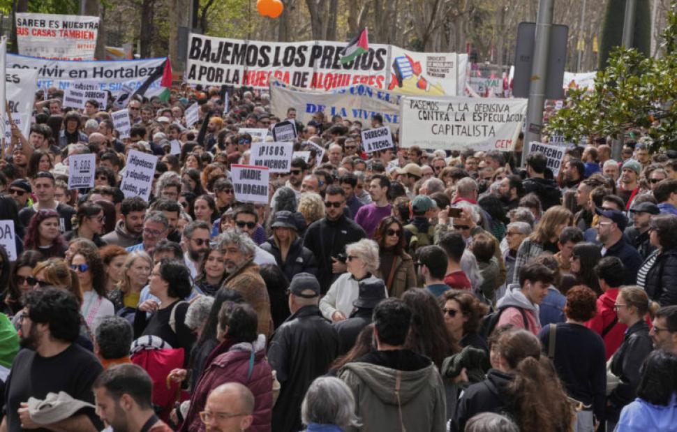 Εκατοντάδες χιλιάδες άνθρωποι διαδήλωσαν σε 40 ισπανικές πόλεις σήμερα για να διαμαρτυρηθούν για την εκτίναξη των τιμών των ενοικίων και την έλλειψη οικονομικά προσιτών κατοικιών σε μια χώρα που απολαμβάνει την ταχύτερη οικονομική ανάπτυξη στην Ευρώπη και ωστόσο υποφέρει από σοβαρή έλλειψη στέγης που επιδεινώνεται από την τουριστική έκρηξη.