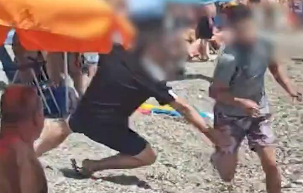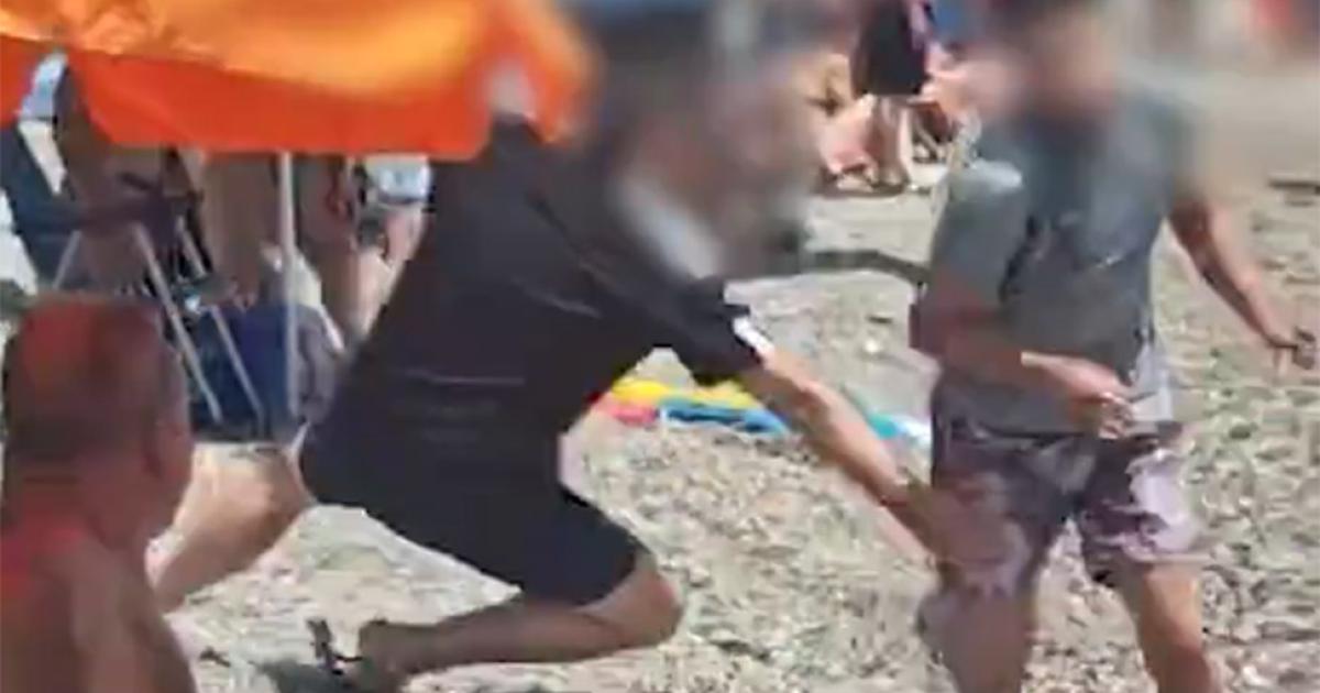 Ένα κλιπ δείχνει έναν λουόμενο να καθηλώνει έναν άνδρα κάτω, ενώ φαίνεται να ικετεύει να τον αφήσουν να φύγει.
