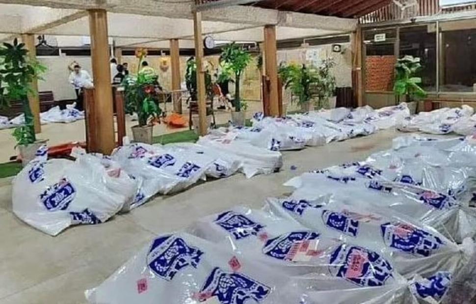 Οι λευκές σακούλες με τις σορούς, με τους ανθρώπους που σκοτώθηκαν, που ισοδυναμεί στο 10% του πληθυσμού της κοινότητας, προκαλούν αποτροπιασμό.