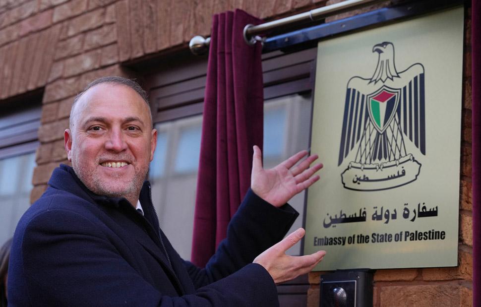 «Συγκεντρωθήκαμε σήμερα για να σηματοδοτήσουμε μια ιστορική στιγμή: τα εγκαίνια της πρεσβείας του κράτους της Παλαιστίνης στο Ηνωμένο Βασίλειο, με πλήρες διπλωματικό καθεστώς και πλήρεις αρμοδιότητες», δήλωσε ο πρέσβης Χουσάμ Ζομλότ, ο οποίος μέχρι πρότινος είχε τον τίτλο του επικεφαλής της παλαιστινιακής διπλωματικής αποστολής.