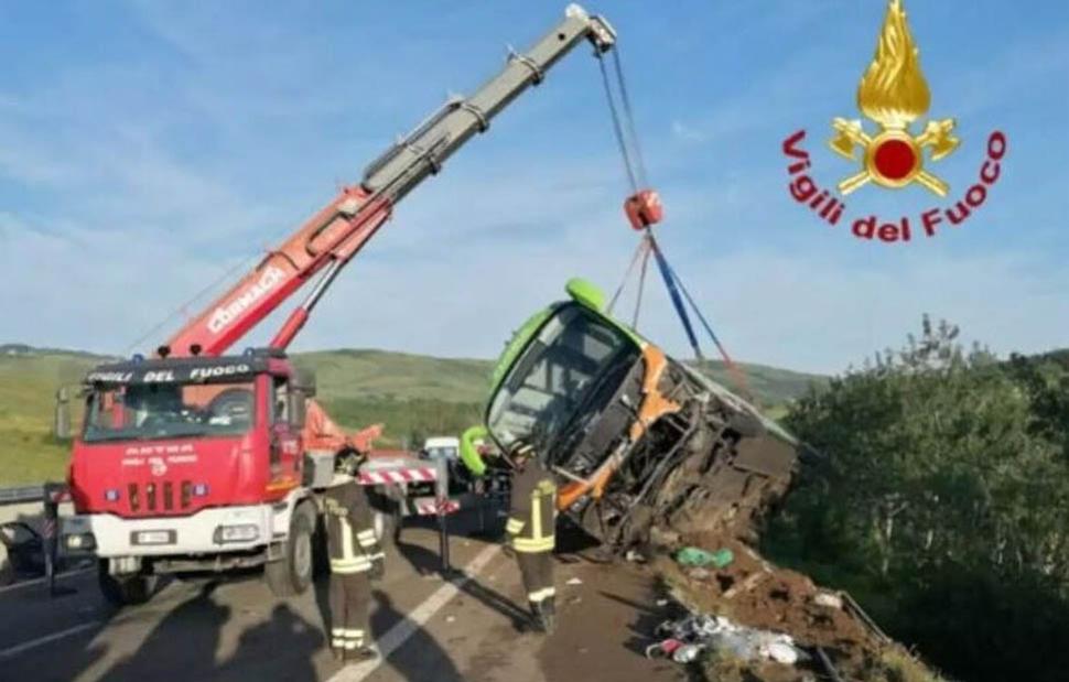 Το λεωφορείο κινούταν στον αυτοκινητόδρομο με προορισμό τη Ρώμη. Είχε ξεκινήσει το δρομολόγιό του από το Λέτσε, όταν ξαφνικά βρέθηκε πίσω από δύο αυτοκίνητα, που ήταν σταματημένα, έχοντας εμπλακεί σε άλλο ατύχημα.