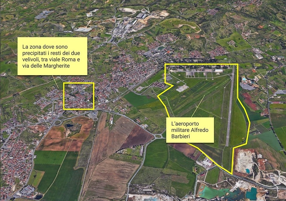 Οι δύο πιλότοι βρίσκονταν στο πηδάλιο δύο εκπαιδευτικών αεροσκαφών τύπου U-208 και συμμετείχαν σε εκπαιδευτική αποστολή, διευκρινίζει η ανακοίνωση της Πολεμικής Αεροπορίας της Ιταλίας. Τα αεροσκάφη συνετρίβησαν σε κατοικημένη περιοχή, προκαλώντας ζημιές σε κτίρια και αυτοκίνητα, ωστόσο δεν υπήρξε άλλο θύμα.