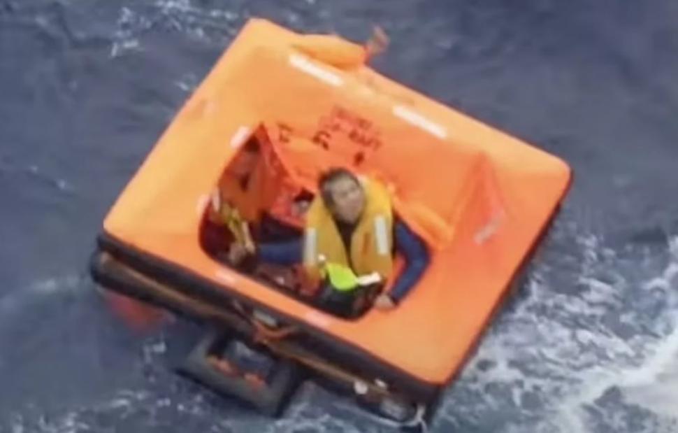 Στο παρακάτω βίντεο που τραβήχτηκε από κινητό τηλέφωνο από το κατάστρωμα του πλοίου μεταφοράς αργού πετρελαίου, φαίνεται η σχεδία με τους επιζώντες και η διάσωση της από την άγρια θάλασσα.