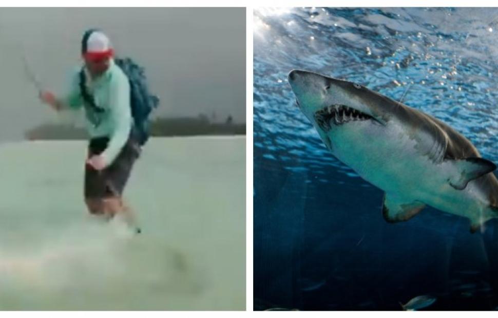 Ο καρχαρίας επιμένει να επιτίθεται και ο άντρας τον απωθεί ξανά και ξανά με το καλάμι ψαρέματος.