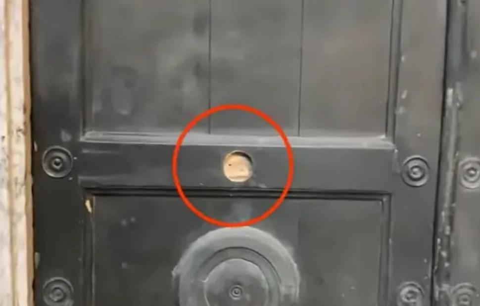 «Βρισκόμαστε δίπλα στην αυτοκρατορική πύλη που είναι ένα από τα πιο σημαντικά σημεία της Αγίας Σοφίας. Δίπλα ακριβώς στην πύλη υπάρχει μια πολύ θλιβερή εικόνα. Δείτε υπάρχουν πολλά εμβλήματα αλλά ένα εξ αυτών δεν υπάρχει αυτή την στιγμή. Ή εκλάπη ή εξαφανίστηκε», αναφέρει ο δημοσιογράφος και δείχνει το σημείο στην κεντρική πύλη από την οποία διέρχονται καθημερινά εκατοντάδες κόσμου.