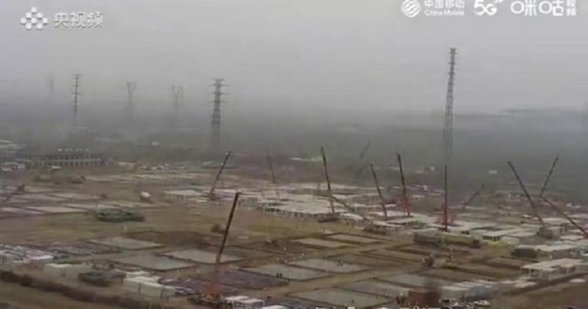 Οι σκηνές θύμιζαν την ανέγερση μέσα σε λίγες ημέρες ενός νοσοκομείου εκστρατείας στη Γουχάν πέρυσι, την πόλη από όπου ξεκίνησε η πανδημία του κορωνοϊού.