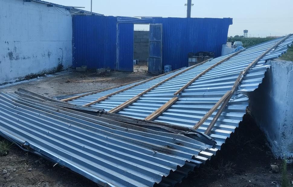 Ένας μικρός ανεμοστρόβιλος ξήλωσε κολώνες της ΔΕΗ, οροφές από κτηνοτροφικές μονάδες και τοίχους περιφράξεων. Μεγάλες ζημιές προκλήθηκαν και σε αγροτικές εκτάσεις, με τον ισχυρό άνεμο να ξεριζώνει καλλιέργειες.