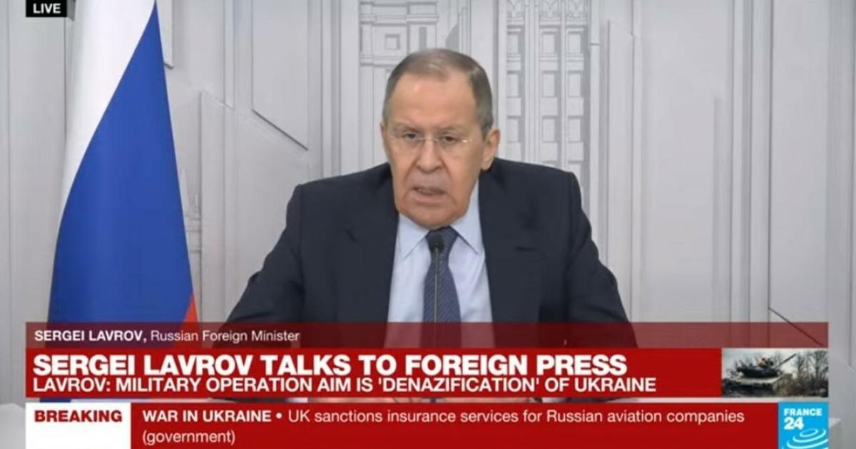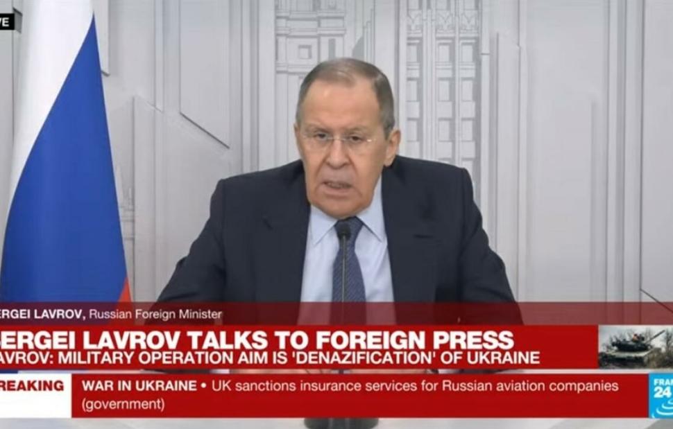 Ο Λαβρόφ επανέλαβε σε συνέντευξη Τύπου, στην οποία μετείχαν και δυτικοί δημοσιογράφοι, ότι στόχος της Ρωσίας είναι η «αποστρατιωτικοποίηση και η αποναζιστικοποίηση» της Ουκρανίας και ότι «ο ουκρανικός λαός έχει το δικαίωμα της αυτοδιάθεσης».