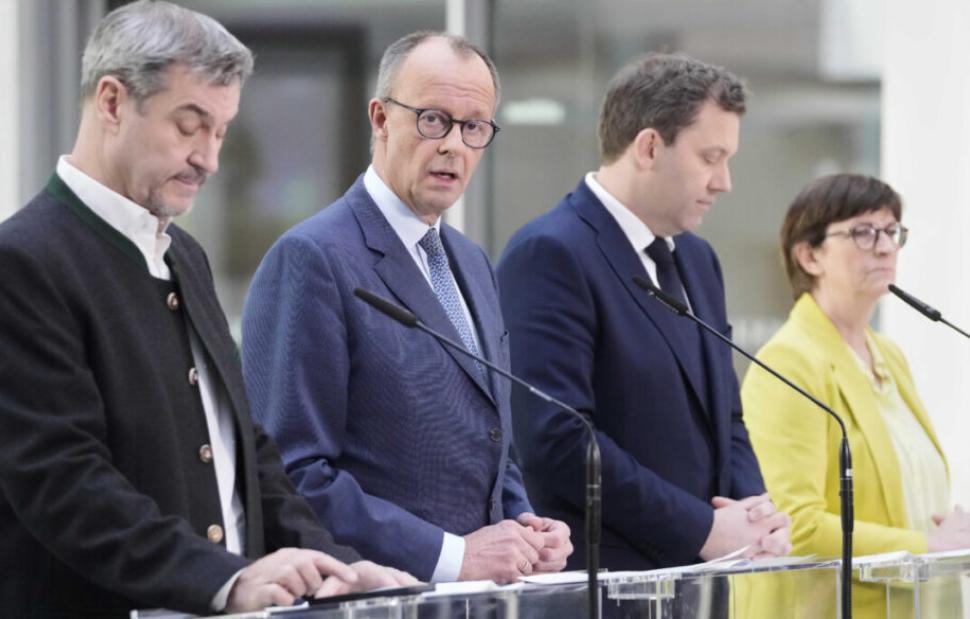 Ενόψει της εσωτερικής αλλά και της διεθνούς συγκυρίας, οι διερευνητικές συνομιλίες ολοκληρώθηκαν ασυνήθιστα γρήγορα και οι αρχηγοί των τριών κομμάτων, ο κατά πάσα πιθανότητα επόμενος καγκελάριος Φρίντριχ Μερτς (CDU), ο Μάρκους Ζέντερ (CSU) και ο Λαρς Κλινγκμπάιλ (SPD), ανακοίνωσαν πριν από λίγο την συμφωνία τους στα δύο βασικά ζητήματα πολιτικής, τη μετανάστευση και την οικονομία.