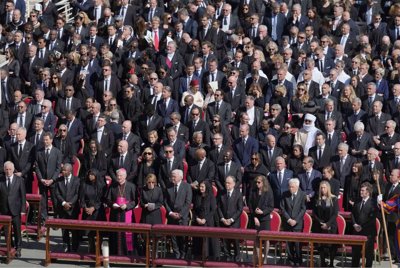 Στους ηγέτες που θέλησαν να πουν το στερνό αντίο στον Αργεντινό ποντίφικα, συμπεριλαμβάνονται ο Πρόεδρος της Γαλλίας Εμανουέλ Μακρόν, ο Πρόεδρος της Γερμανίας Φρανκ Βάλτερ Σταϊνμάιερ, ο απερχόμενος Καγκελάριος της Γερμανίας Όλαφ Σολτς, η Πρόεδρος της Ευρωπαϊκής Επιτροπής Ούρσουλα φον ντερ Λάιεν, ο Πρόεδρος της Βραζιλίας Λουίς Ινάσιο Λούλα Ντα Σίλβα. Παρών και ο Πρόεδρος της Αργεντινής Χαβιέρ Μιλέι, παρά την έντονη κριτική που είχε ασκήσει σε πολλές θέσεις και δηλώσεις του Αγίου Πατέρα των Ρωμαιοκαθολικών.