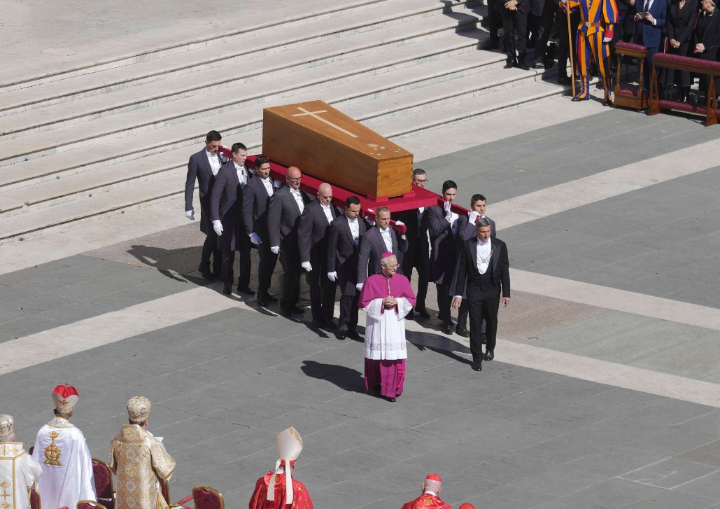 Τελέστηκε η κηδεία του Πάπα Φραγκίσκου στο Βατικανό. Ασφυκτικά γεμάτη ήταν η πλατεία του Αγίου Πέτρου της Ρώμης, από πιστούς κάθε ηλικίας αλλά και από ηγέτες και βασιλείς από ολόκληρο τον κόσμο, που λένε το ύστατο χαίρε στον Πάπα Φραγκίσκου. Υπολογίζεται ότι οι πιστοί ξεπέρασαν τις 250.000, ενώ στην Ρώμη βρέθηκαν εκατόν εβδομήντα ξένες αντιπροσωπείες.