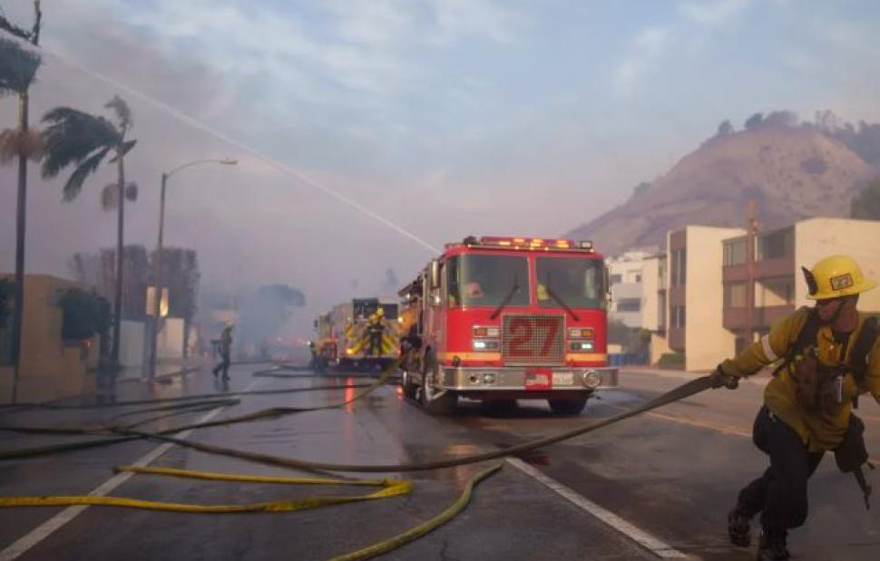 Παράλληλα, μπροστά από ένα Πυροσβεστικό όχημα έξω από το Κέντρο Επιχειρήσεων συνδέθηκε και μίλησε στην ΕΡΤ ο Μάριος Λαζαρίδης, Έλληνας κάτοικος του Λος Άντζελες. «Σε αυτό το σημείο επιστρέφουν το βράδυ κατάκοποι όλοι πυροσβέστες από διαφορετικές γωνιές των Ηνωμένων Πολιτειών μεταξύ άλλων του Νέου Μεξικού, της Αριζόνας, της Γιούτα και πολλών άλλων που έχουν συνδράμει στην τραγική και δραματική κατάσταση που ζούμε για τέταρτη νύχτα» τόνισε ο κ. Λαζαρίδης. «Η Καλιφόρνια φλέγεται», είπε, τονίζοντας πως «η κατάσταση είναι τελείως δραματική».