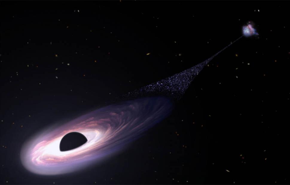 Έπειτα από παρατηρήσεις με το φασματόμετρο απεικόνισης χαμηλής ανάλυσης και το φασματογράφο εγγύς υπερύθρου του Αστεροσκοπείου Keck συμπέραναν ότι έβλεπαν το επακόλουθο μιας μαύρης τρύπας που πετούσε. Τα ευρήματα δημοσιεύονται στο περιοδικό «The Astrophysical Journal Letters».